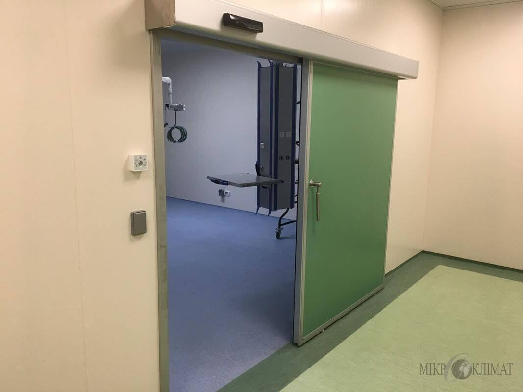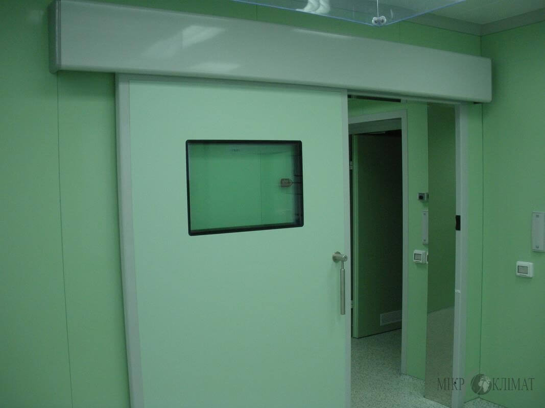Дверні блоки складаються з дверної рами, дверного полотна, дверної направляючої та елементів дверної фурнітури. Дверна рама виконується з алюмінієвого профілю з додатковим захисним покриттям поверхні. Дверне полотно складається з двох зовнішніх видимих елементів, з заповненням внутрішнього простору між ними теплоізолюючим матеріалом. Конструктивні вузли спроектовані в гігієнічному виконанні, не мають гострих кутів, пазів, заглибин, тобто не сприяють накопиченню пилу, шкідливих частинок та бактерій. Для виробництва дверних блоків застосовується дверна фурнітура відомих європейських брендів. Монтуються на будь-яку стінову перегородку.